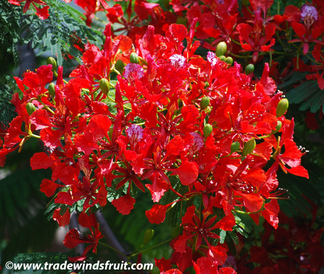 Beautiful tropical tree having ornamental red-orange-yellow flowers borne almost year-round.
