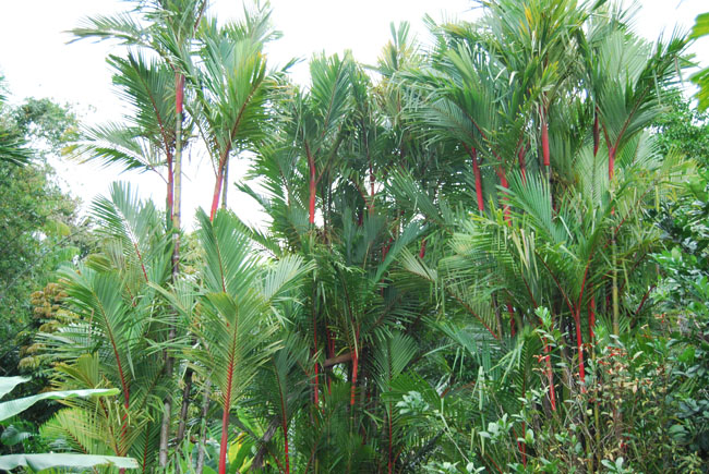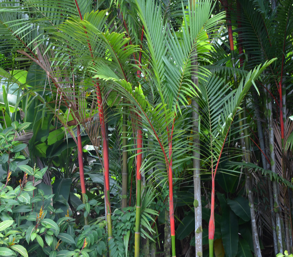 Medium sized palm with bright red stalks, the only such palm in the world.